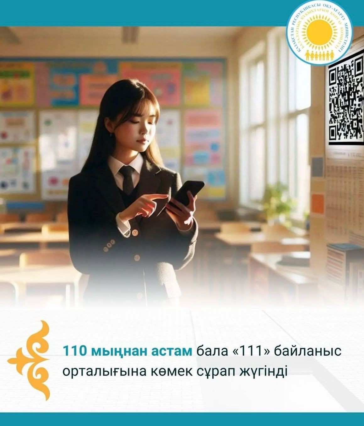 2025 жылдың басынан бері отбасы, әйелдер мен балалардың құқықтарын қорғау мәселелері бойынша өтініштер қабылдайтын «111» бірыңғай байланыс орталығына балалардан 110 999 өтініш келіп түсті. Оның ішінде 108 987 өтініш мектептер мен колледждерде орналастырылған QR-кодтар арқылы, ал 2 012 қоңырау телефон арқылы қабылданған.