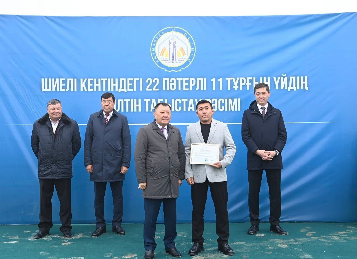 Рәсімде Шиелі ауданының әлеуметтік-экономикалық дамуына үлес қосқан азаматтар мен тұрғын үйді салған мердігер мекеме қызметкерлері Қызылорда облысы әкімінің Алғыс хатымен марапатталды. Еңбек ардагері Т.Жағыпбаров жиналған жұртшылыққа бата берді.