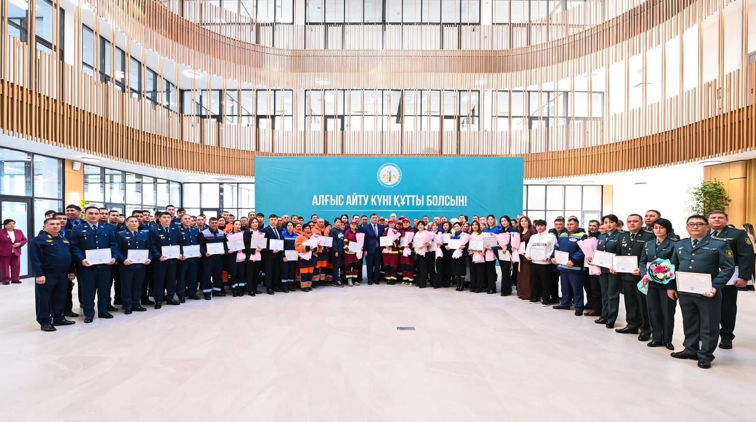 Айтулы күн қарсаңында тұрғындардың қалыпты тұрмыс-тіршілігін қамтамасыз ететін салаларда күннің ыстық-суығына қарамай, уақытпен санаспай еңбек ететін қызметкерлерге құрмет көрсету үшін бас қостық. Сондай-ақ қасиетті Отанымызды қорғауда патриотизмнің нағыз үлгісін көрсетіп, өзіне жүктелген міндетті мүлтіксіз орындайтын айбынды әскери қызметшілерімізге, құқық қорғау саласы қызметкерлеріне, сын сағатта қайсарлық танытып, өзгенің өмірін сақтау үшін өз басын қатерге тігетін өрт сөндірушілер мен құтқарушыларымызға, шұғыл медициналық көмек көрсететін жедел жәрдем қызметкерлері мен жол саласы мамандарына, ел игілігі жолында еңбек етіп жүрген еріктілерімізге барша Сыр жұртшылығының атынан зор ризашылығымды, шынайы алғысымды білдіремін!
