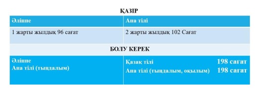 Ал біз Әліппе, Ана тілі, Қазақ тілі деген үш пәнді бір пәннің сағатына біріктіріп, кіріктіріп отырмыз. Кезінде қазақ мектебінің бірінші сыныбына әліппе/ана тілі (қазақ тілі) математика, дүниетану, жаратылыстану, көркем еңбек, ағылшын, орыс тілі, өзін-өзі тану, дене шынықтыру, музыка, цифрлық сауаттылық деген 12 пәнді оқытқан күндеріміз де болған. Мұның қате екенін түсініп, бірінші сыныпта оқытылатын пәндерді түзеген болдық, бірақ әлі де артық пәндер бар. Бүгінгі бастауыштағы пәндердің кестесі:
