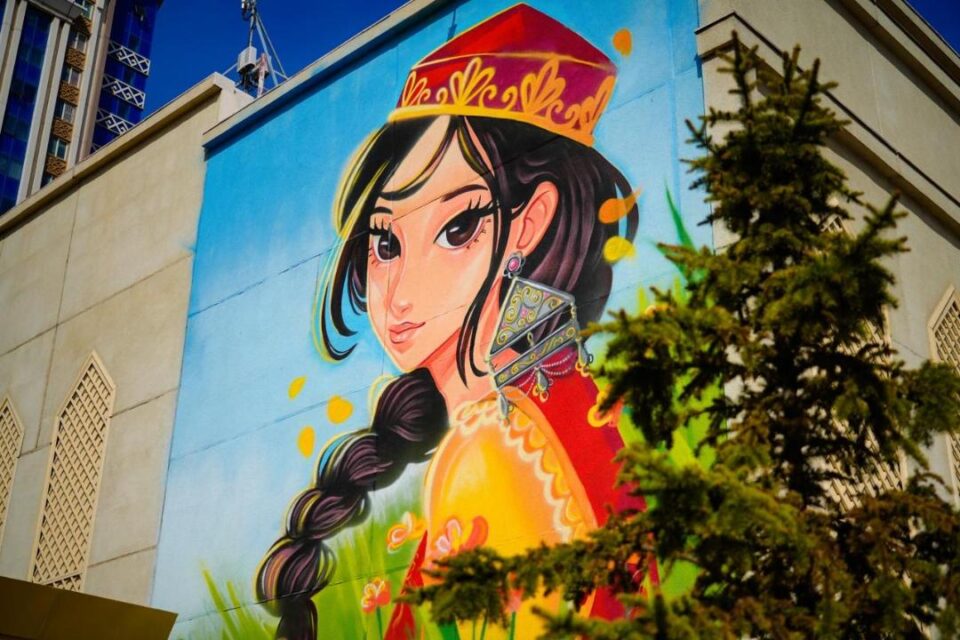 Астанадағы ғимараттардың бірінің қасбетіне жаңа мурал салынды
